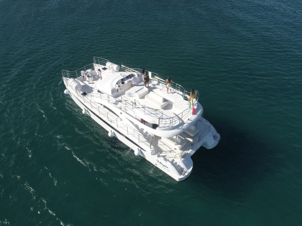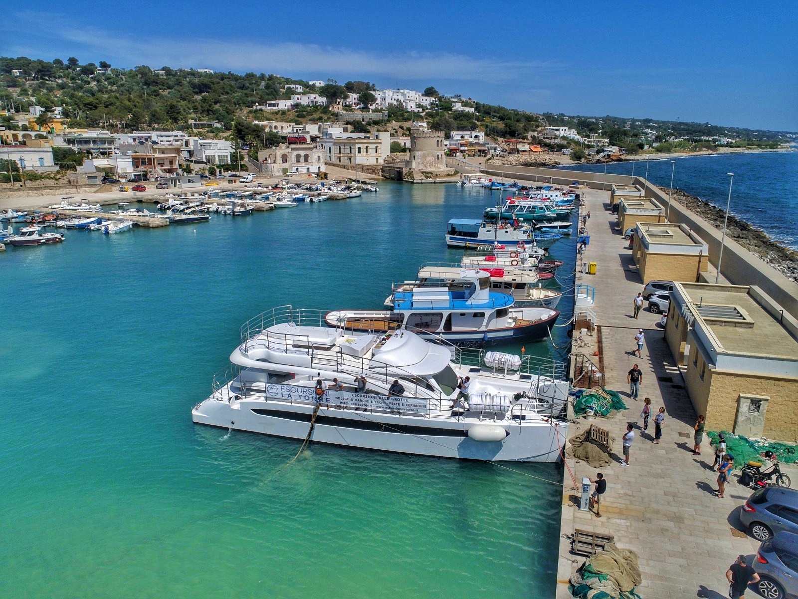 Escursione lunga: Il tour parte dal porto turistico di Torre Vado. Durante l’escursione si visitano le grotte del versante ionico e del parco naturale adriatico fino al “Complesso delle Mannute” (Mar Adriatico). Vista di Santa Maria di Leuca e del Tacco d'Italia dal mare. Il nostro equipaggio vi racconterà le particolarità e i segreti delle più belle grotte del Salento. Durante il giro sono previste due soste per il bagno di circa 25 minuti ognuna. Servizio bar a bordo. *NOTA: gli orari possono subire variazioni a discrezione della compagnia; a causa delle normative emanate per il contrasto e il contenimento del COVID – 19, relative alla manipolazione del cibo, il servizio di aperitivo a buffet potrebbe essere non consentito.